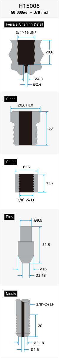 Medium PressureからGland内にCollarとNippleを用いて製品を締結します。 このCone and thread方式の接続は最適の密閉方法で、高い圧力と温度において液体と気体の両方とも信頼性の高い性能を発揮でき、簡単かつ迅速に高圧装備を構成するためのスタンダードです。